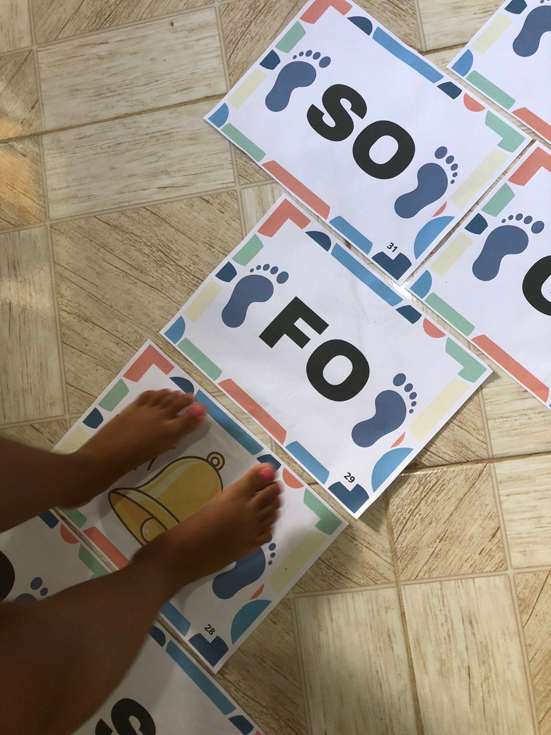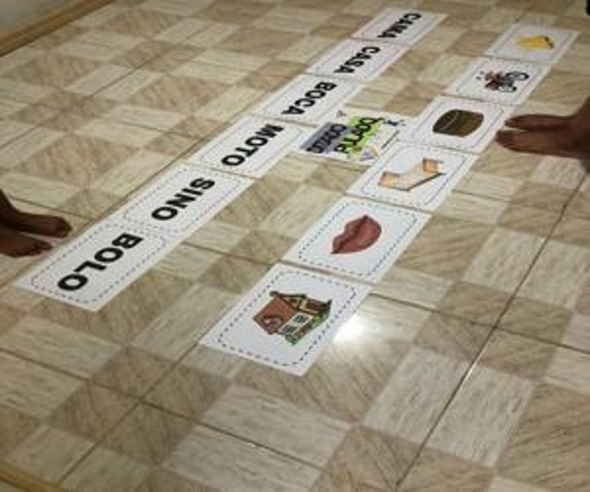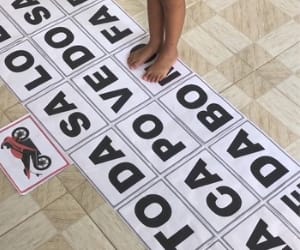 En ella, las fichas de las sílabas se colocan en el suelo como “saltos” que el alumno debe seguir para formar la palabra correcta.